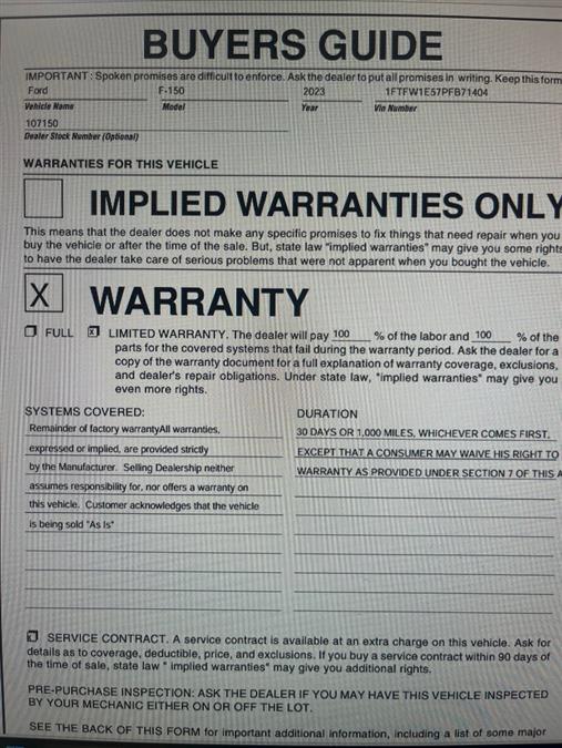 Car Revolution has a wide selection of exceptional pre-owned vehicles to choose from, including this 2023 Ford F-150. This Ford includes: Optional Equipment: Comfort Driver seat with 8-way directional controls Exterior and Appearance Metallic paint 18 x 8.5-inch front and rear silver aluminum wheels P275/65SR18 AT BSW front and rear tires Front license plate bracket Mechanical 7,050 lbs Payload Package GVWR Seating 8-WAY POWER DRIVERS SEAT Driver seat with 8-way directional controls Driver seat with 2-way power lumbar Driver seat power reclining, lumbar support, cushion tilt, fore/aft control and height adjustable control Powertrain and Mechanical Variable intake manifold 5L V-8 port/direct injection, DOHC, variable valve control, regular unleaded, engine with 400HP 5L V-8 DOHC Engine Cylinders - V8 Tires & Wheels 275/65R18 BSW ALL-TERRAIN TIRE P275/65SR18 AT BSW front and rear tires 18 SILVER ALUMINUM WHEELS 18 x 8.5-inch front and rear silver aluminum wheels Exterior FRONT LICENSE PLATE BRACKET Front license plate bracket Additional Options Equipment Group 300A Standard Interior BAJA TAN CLOTH 40/20/40 Engine 5.0L V8 ENGINE Front mounted engine Regular Unleaded Spark ignition system Variable intake manifold Longitudinal mounted engine Aluminum engine block Aluminum cylinder head Auto stop-start engine LEV3-ULEV125 emissions Tier 3 Bin 125 emissions 5L V-8 port/direct injection, DOHC, variable valve control, regular unleaded, engine with 400HP 5L V-8 DOHC Engine Cylinders - V8 Front mounted engine Regular Unleaded Spark ignition system Variable intake manifold Longitudinal mounted engine Aluminum engine block Aluminum cylinder head Auto stop-start engine LEV3-ULEV125 emissions Tier 3 Bin 125 emissions Stainless steel single exhaust with chrome tailpipe finisher 5L V-8 port/direct injection, DOHC, variable valve control, regular unleaded, engine with 400HP 5L V-8 DOHC Engine Cylinders - V8 AUTO START-STOP REMOVAL Front mounted engine Regular Unleaded Spark ignition system Variable intake manifold Longitudinal mounted engine Aluminum engine block Iron engine block Aluminum cylinder head Auto stop-start engine LEV3-ULEV125 emissions LEV3-ULEV70 emissions Tier 3 Bin 125 emissions Tier 3 Bin 70 emissions 5L V-8 port/direct injection, DOHC, variable valve control, regular unleaded, engine with 400HP EcoBoost 2.7L V-6 port/direct injection, DOHC, Ti-VCT variable valve control, twin turbo, regular unleaded, engine with 325HP EcoBoost 3.5L V-6 port/direct injection, DOHC, Ti-VCT variable valve control, twin turbo, regular unleaded, engine with 400HP 5L V-8 DOHC EcoBoost 2.7L V-6 DOHC EcoBoost 3.5L V-6 DOHC EcoBoost V6 Engine Cylinders - V8 Twin turbo Paint AGATE BLACK METALLIC Metallic paint Suspension 3.31 RATIO REGULAR AXLE *Note - For third party subscriptions or services, please contact the dealer for more information.* This Ford F-150 XLT 4WD SUPERCREW's level of quality is not meant for just anyone. It's meant for the person who strives for a classy, comfortable, and luxurious car. This 4WD-equipped vehicle will handle beautifully on any terrain and in any weather condition your may find yourself in. The benefits of driving a 4 wheel drive vehicle, such as this Ford F-150 XLT 4WD SUPERCREW, include superior traction and stability. Just what you've been looking for. With quality in mind, this vehicle is the perfect addition to take home. Car Revolution has been in business since 1998 with 2 locations and over 300 cars. A family owned business, focused and determined to extend hospitality to all our clients. We make every effort to present information that is accurate. However, it is based on data provided by the vehicle manufacturer and other sources. Therefore exact Configuration, Color, Certification and Accessories should be used as a guide only and are not guaranteed under any circumstances, for any inaccuracies, claims of losses of any nature. All advertised prices includes all cost to be paid by the consumer, except: Title, Taxes, Registration, License Fees, Insurance, Dealer Prep, Additional Options and include all applicable rebates. Subject to Credit Approval. Every effort is made in order to display accurate and current vehicle information, including Pricing. All vehicles are subjected to prior sale, removal and transport elsewhere, awaiting Title and Ownership Confirmation. Inventory is updated daily and subject to change. Not responsible for typographical errors or omissions. To better insure the specific vehicle's availability, call us right away at 856-316-3444 and feel free to ask any questions. EMG-WB Contact Car Revolution today for information on dozens of vehicles like this 2023 Ford F-150 XLT. With amenities and luxuries befitting a modern day king, this splendorous coach reigns supreme. This 4WD-equipped vehicle will handle majestically on any terrain and in any weather condition your may find yourself in. The benefits of driving an Four Wheel Drive vehicle, such as this FordF-150 XLT, include superior acceleration, improved steering, and increased traction and stability. The Ford F-150 XLT will provide you with everything you have always wanted in a car -- Quality, Reliability, and Character. This is about the time when you're saying it is too good to be true, and let us be the one's to tell you, it is absolutely true. Car Revolution has been in business since 1998 with 2 locations and over 300 cars. A family owned business, focused and determined to extend hospitality to all our clients. We make every effort to present information that is accurate. However, it is based on data provided by the vehicle manufacturer and other sources. Therefore exact Configuration, Color, Certification and Accessories should be used as a guide only and are not guaranteed under any circumstances, for any inaccuracies, claims of losses of any nature. All advertised prices includes all cost to be paid by the consumer, except: Title, Taxes, Registration, License Fees, Insurance, Dealer Prep,