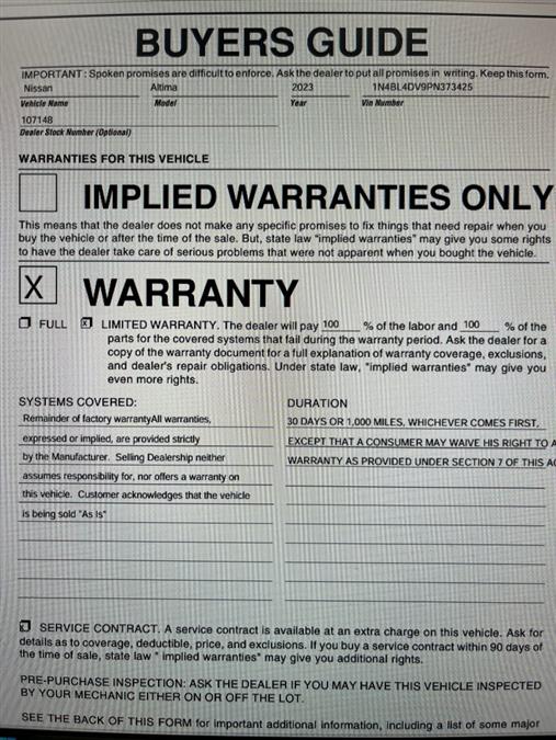 Contact Car Revolution today for information on dozens of vehicles like this 2023 Nissan Altima 2.5 SV. This Nissan includes: Optional Equipment: Convenience Carpet cargo mat Cargo net Comfort Carpet front and rear floor mats Exterior and Appearance Pearlcoat paint Interior Floor Mats/trunk Mat/hideaway Net Carpet front and rear floor mats Carpet cargo mat Cargo net Charcoal Paint Garnet Pearl Metallic Pearlcoat paint Emissions 50 State Emissions LEV3-SULEV30 emissions Tier 3 Bin 30 emissions *Note - For third party subscriptions or services, please contact the dealer for more information.* The less money you spend at the pump, the more money you'll have to spend on you. So why not consider this wonderfully styled, fuel-efficient Nissan Altima. There are many vehicles on the market but if you are looking for a vehicle that will perform as good as it looks then this Nissan Altima 2.5 SV is the one! This Garnet Pearl Metallic Nissan is clean and shiny exterior makes it look like it came straight from the factory. Car Revolution has been in business since 1998 with 2 locations and over 300 cars. A family owned business, focused and determined to extend hospitality to all our clients. We make every effort to present information that is accurate. However, it is based on data provided by the vehicle manufacturer and other sources. Therefore exact Configuration, Color, Certification and Accessories should be used as a guide only and are not guaranteed under any circumstances, for any inaccuracies, claims of losses of any nature. All advertised prices includes all cost to be paid by the consumer, except: Title, Taxes, Registration, License Fees, Insurance, Dealer Prep, Additional Options and include all applicable rebates. Subject to Credit Approval. Every effort is made in order to display accurate and current vehicle information, including Pricing. All vehicles are subjected to prior sale, removal and transport elsewhere, awaiting Title and Ownership Confirmation. Inventory is updated daily and subject to change. Not responsible for typographical errors or omissions. To better insure the specific vehicle's availability, call us right away at 856-316-3444 and feel free to ask any questions. EMG-WB Car Revolution has a wide selection of exceptional pre-owned vehicles to choose from, including this 2023 Nissan Altima. The 2023 Nissan offers compelling fuel-efficiency along with great value. You will no longer feel the need to repeatedly fill up this Nissan Altima 2.5 SV's gas tank, in part because of it's superb EPA rating. The look is unmistakably Nissan, the smooth contours and cutting-edge technology of this Nissan Altima 2.5 SV will definitely turn heads. There is no reason why you shouldn't buy this Nissan Altima 2.5 SV. It is incomparable for the price and quality. The quintessential Nissan -- This Nissan Altima 2.5 SV speaks volumes about its owner, about uncompromising individuality, a passion for driving and standards far above the ordinary. Car Revolution has been in business since 1998 with 2 locations and over 300 cars. A family owned business, focused and determined to extend hospitality to all our clients. We make every effort to present information that is accurate. However, it is based on data provided by the vehicle manufacturer and other sources. Therefore exact Configuration, Color, Certification and Accessories should be used as a guide only and are not guaranteed under any circumstances, for any inaccuracies, claims of losses of any nature. All advertised prices includes all cost to be paid by the consumer, except: Title, Taxes, Registration, License Fees, Insurance, Dealer Prep, Additional Options and include all applicable rebates. Subject to Credit Approval. Every effort is made in order to display accurate and current vehicle information, including Pricing. All vehicles are subjected to prior sale, removal and transport elsewhere, awaiting Title and Ownership Confirmation. Inventory is updated daily and subject to change. Not responsible for typographical errors or omissions. To better insure the specific vehicle's availability, call us right away at 856-316-3444 and feel free to ask any questions. EMG-WB