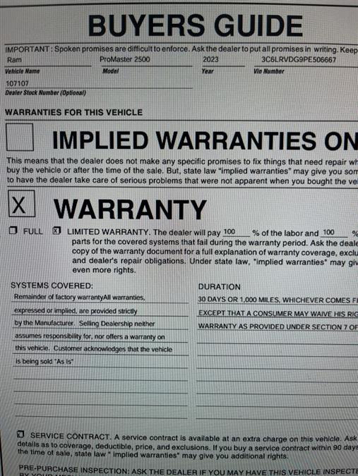 Pictures of used 2023 Ram Promaster 2500 High Roof in Maple Shade, NJ
