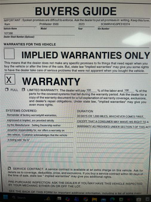 Pictures of used 2023 Ram Promaster 3500 HIGH ROOF in Maple Shade, NJ