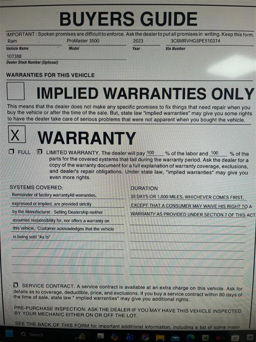 Pictures of used 2023 Ram Promaster 3500 HIGH ROOF in Maple Shade, NJ
