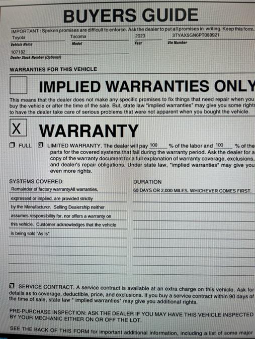 This 2023 Toyota Tacoma SR5 DOUBLE CAB 2WD is offered to you for sale by Car Revolution. This Toyota includes: Optional Equipment: Paint Celestial Silver Metallic Metallic paint Interior Cement Emissions 50 State Emissions LEV3-ULEV70 emissions Tier 3 Bin 70 emissions Exterior and Appearance Metallic paint Additional Options SR5 Package: All Content Included as Standard Equipment Chrome rear bumper Black grille with chrome surround Daytime running lights Keyfob keyless entry Auto-locking doors Front fog lights Remote panic alarm *Note - For third party subscriptions or services, please contact the dealer for more information.* Beautiful color combination with Celestial Silver Metallic exterior over Cement interior making this the one to own! This is the one. Just what you've been looking for. Just what you've been looking for. With quality in mind, this vehicle is the perfect addition to take home. Car Revolution has been in business since 1998 with 2 locations and over 300 cars. A family owned business, focused and determined to extend hospitality to all our clients. We make every effort to present information that is accurate. However, it is based on data provided by the vehicle manufacturer and other sources. Therefore exact Configuration, Color, Certification and Accessories should be used as a guide only and are not guaranteed under any circumstances, for any inaccuracies, claims of losses of any nature. All advertised prices includes all cost to be paid by the consumer, except: Title, Taxes, Registration, License Fees, Insurance, Dealer Prep, Additional Options and include all applicable rebates. Subject to Credit Approval. Every effort is made in order to display accurate and current vehicle information, including Pricing. All vehicles are subjected to prior sale, removal and transport elsewhere, awaiting Title and Ownership Confirmation. Inventory is updated daily and subject to change. Not responsible for typographical errors or omissions. To better insure the specific vehicle's availability, call us right away at 856-316-3444 and feel free to ask any questions. EMG-WB Thank you for your interest in one of Car Revolution's online offerings. Please continue for more information regarding this 2023 Toyota Tacoma 2WD SR5 with 48,207mi. Driven by many, but adored by more, the Toyota Tacoma 2WD SR5 is a perfect addition to any home. This is about the time when you're saying it is too good to be true, and let us be the one's to tell you, it is absolutely true. You can finally stop searching... You've found the one you've been looking for. There are many vehicles on the market but if you are looking for a vehicle that will perform as good as it looks then this Toyota Tacoma 2WD SR5 is the one! Car Revolution has been in business since 1998 with 2 locations and over 300 cars. A family owned business, focused and determined to extend hospitality to all our clients. We make every effort to present information that is accurate. However, it is based on data provided by the vehicle manufacturer and other sources. Therefore exact Configuration, Color, Certification and Accessories should be used as a guide only and are not guaranteed under any circumstances, for any inaccuracies, claims of losses of any nature. All advertised prices includes all cost to be paid by the consumer, except: Title, Taxes, Registration, License Fees, Insurance, Dealer Prep, Additional Options and include all applicable rebates. Subject to Credit Approval. Every effort is made in order to display accurate and current vehicle information, including Pricing. All vehicles are subjected to prior sale, removal and transport elsewhere, awaiting Title and Ownership Confirmation. Inventory is updated daily and subject to change. Not responsible for typographical errors or omissions. To better insure the specific vehicle's availability, call us right away at 856-316-3444 and feel free to ask any questions. EMG-WB