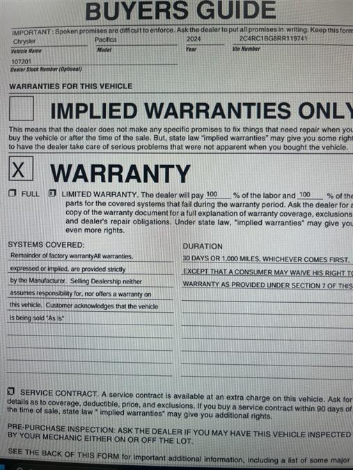 This 2024 Chrysler Pacifica Touring L FWD is offered to you for sale by Car Revolution. This Chrysler includes: Optional Equipment: Exterior and Appearance Non-metallic paint Exterior Manufacturer's Statement of Origin Additional Options Quick Order Package 27L Interior Black Seats Black/Alloy/Black Paint Bright White Clearcoat Non-metallic paint *Note - For third party subscriptions or services, please contact the dealer for more information.* Indulge yourself with one of the most highly crafted, most luxurious automobiles available today. This vehicle won't last long, take it home today. There are many vehicles on the market but if you are looking for a vehicle that will perform as good as it looks then this Chrysler Pacifica Touring L FWD is the one! Car Revolution has been in business since 1998 with 2 locations and over 300 cars. A family owned business, focused and determined to extend hospitality to all our clients. We make every effort to present information that is accurate. However, it is based on data provided by the vehicle manufacturer and other sources. Therefore exact Configuration, Color, Certification and Accessories should be used as a guide only and are not guaranteed under any circumstances, for any inaccuracies, claims of losses of any nature. All advertised prices includes all cost to be paid by the consumer, except: Title, Taxes, Registration, License Fees, Insurance, Dealer Prep, Additional Options and include all applicable rebates. Subject to Credit Approval. Every effort is made in order to display accurate and current vehicle information, including Pricing. All vehicles are subjected to prior sale, removal and transport elsewhere, awaiting Title and Ownership Confirmation. Inventory is updated daily and subject to change. Not responsible for typographical errors or omissions. To better insure the specific vehicle's availability, call us right away at 856-316-3444 and feel free to ask any questions. EMG-WB You can find this 2024 Chrysler Pacifica Touring L and many others like it at Car Revolution. With amenities and luxuries befitting a modern day king, this splendorous coach reigns supreme. Based on the superb condition of this vehicle, along with the options and color, this Chrysler Pacifica Touring L is sure to sell fast. The look is unmistakably Chrysler, the smooth contours and cutting-edge technology of this Chrysler Pacifica Touring L will definitely turn heads. Just what you've been looking for. With quality in mind, this vehicle is the perfect addition to take home. Car Revolution has been in business since 1998 with 2 locations and over 300 cars. A family owned business, focused and determined to extend hospitality to all our clients. We make every effort to present information that is accurate. However, it is based on data provided by the vehicle manufacturer and other sources. Therefore exact Configuration, Color, Certification and Accessories should be used as a guide only and are not guaranteed under any circumstances, for any inaccuracies, claims of losses of any nature. All advertised prices includes all cost to be paid by the consumer, except: Title, Taxes, Registration, License Fees, Insurance, Dealer Prep, Additional Options and include all applicable rebates. Subject to Credit Approval. Every effort is made in order to display accurate and current vehicle information, including Pricing. All vehicles are subjected to prior sale, removal and transport elsewhere, awaiting Title and Ownership Confirmation. Inventory is updated daily and subject to change. Not responsible for typographical errors or omissions. To better insure the specific vehicle's availability, call us right away at 856-316-3444 and feel free to ask any questions. EMG-WB