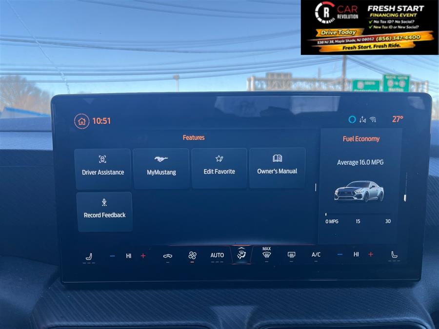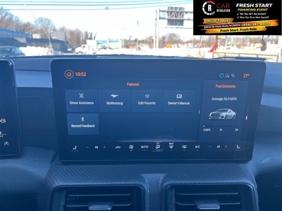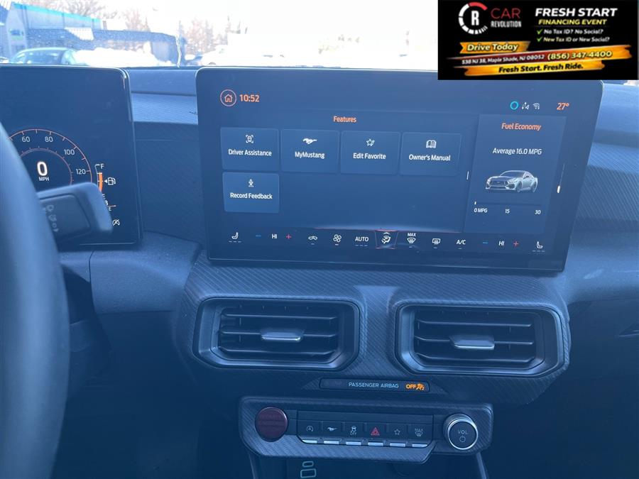 Check out this pre-owned 2024 Ford Mustang we recently got in. This Ford includes: Optional Equipment: Comfort Heated driver and front passenger seats Driver seat with 8-way directional controls Driver seat with 2-way power lumbar Front passenger seat with 6-way directional controls Cloth and vinyl front seat upholstery Cloth and vinyl rear seat upholstery Dual-zone front climate control Driver seat power lumbar support, cushion tilt, fore/aft control and height adjustable control Passenger seat power fore/aft control and height adjustable control Exterior and Appearance Non-metallic paint Front license plate bracket Seating Cloth/vinyl Heated Bucket Seats Bucket front seats Heated driver and front passenger seats Driver seat with 8-way directional controls Driver seat with 2-way power lumbar Front passenger seat with 6-way directional controls Cloth and vinyl front seat upholstery Cloth and vinyl rear seat upholstery Driver seat power lumbar support, cushion tilt, fore/aft control and height adjustable control Passenger seat power fore/aft control and height adjustable control Exterior SPOILER DELETE FRONT LICENSE PLATE BRACKET Front license plate bracket Additional Options Equipment Group 101A High Package Automatic climate control Air conditioning - Yes Dual-zone front climate control 3 month satellite trial subscription Amplifier Digital signal processor 9 speakers AM/FM/digital/SiriusXMsatellite In-car Entertainment 3 month satellite trial subscription Amplifier Digital signal processor 9 speakers AM/FM/digital/SiriusXMsatellite Interior BLACK ONYX CLOTH/VINYL TRIM Dual-Zone Electronic Automatic Temperature Control Automatic climate control Air conditioning - Yes Dual-zone front climate control Entertainment SiriusXM with 360L and HD Radio 3 month satellite trial subscription AM/FM/digital/SiriusXMsatellite 9-Speaker Stereo System Amplifier Digital signal processor 9 speakers Paint SHADOW BLACK Non-metallic paint *Note - For third party subscriptions or services, please contact the dealer for more information.* Start enjoying more time in your new ride and less time at the gas station with this 2024 Ford Mustang. The look is unmistakably Ford, the smooth contours and cutting-edge technology of this Ford Mustang EcoBoost will definitely turn heads. The 2024 Ford exterior is finished in a breathtaking Shadow Black, while being complemented by such a gorgeous Black Onyx interior. This color combination is stunning and absolutely beautiful! Car Revolution has been in business since 1998 with 2 locations and over 300 cars. A family owned business, focused and determined to extend hospitality to all our clients. We make every effort to present information that is accurate. However, it is based on data provided by the vehicle manufacturer and other sources. Therefore exact Configuration, Color, Certification and Accessories should be used as a guide only and are not guaranteed under any circumstances, for any inaccuracies, claims of losses of any nature. All advertised prices includes all cost to be paid by the consumer, except: Title, Taxes, Registration, License Fees, Insurance, Dealer Prep, Additional Options and include all applicable rebates. Subject to Credit Approval. Every effort is made in order to display accurate and current vehicle information, including Pricing. All vehicles are subjected to prior sale, removal and transport elsewhere, awaiting Title and Ownership Confirmation. Inventory is updated daily and subject to change. Not responsible for typographical errors or omissions. To better insure the specific vehicle's availability, call us right away at 856-316-3444 and feel free to ask any questions. EMG-WB This 2024 Ford Mustang EcoBoost Premium is offered to you for sale by Car Revolution. You could spend more on fuel each month than on your vehicle payments, so why not consider one with exceptional fuel economy like this 2024 Ford Mustang. There is no reason why you shouldn't buy this Ford Mustang EcoBoost Premium. It is incomparable for the price and quality. You can finally stop searching... You've found the one you've been looking for. The quintessential Ford -- This Ford Mustang EcoBoost Premium speaks volumes about its owner, about uncompromising individuality, a passion for driving and standards far above the ordinary. Car Revolution has been in business since 1998 with 2 locations and over 300 cars. A family owned business, focused and determined to extend hospitality to all our clients. We make every effort to present information that is accurate. However, it is based on data provided by the vehicle manufacturer and other sources. Therefore exact Configuration, Color, Certification and Accessories should be used as a guide only and are not guaranteed under any circumstances, for any inaccuracies, claims of losses of any nature. All advertised prices includes all cost to be paid by the consumer, except: Title, Taxes, Registration, License Fees, Insurance, Dealer Prep, Additional Options and include all applicable rebates. Subject to Credit Approval. Every effort is made in order to display accurate and current vehicle information, including Pricing. All vehicles are subjected to prior sale, removal and transport elsewhere, awaiting Title and Ownership Confirmation. Inventory is updated daily and subject to change. Not responsible for typographical errors or omissions. To better insure the specific vehicle's availability, call us right away at 856-316-3444 and feel free to ask any questions. EMG-WB