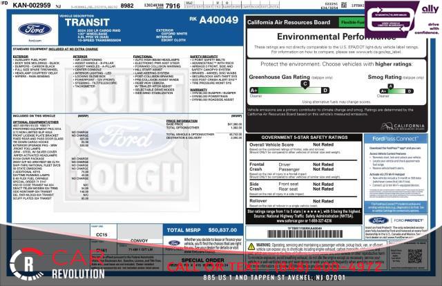CAR REVOLUTION is honored to present a wonderful example of pure vehicle design... this 2024 Ford Transit Cargo Van only has 13,365mi on it and could potentially be the vehicle of your dreams! Opulent refinements married with exceptional engineering make this the kind of car you'll want to own for a lifetime. This is the one. Just what you've been looking for. There are many vehicles on the market but if you are looking for a vehicle that will perform as good as it looks then this Ford Transit Cargo Van is the one! Just what you've been looking for. With quality in mind, this vehicle is the perfect addition to take home. Car Revolution has been in business since 1998 with 2 locations and over 300 cars. A family owned business, focused and determined to extend hospitality to all our clients. We make every effort to present information that is accurate. However, it is based on data provided by the vehicle manufacturer and other sources. Therefore exact Configuration, Color, Certification and Accessories should be used as a guide only and are not guaranteed under any circumstances, for any inaccuracies, claims of losses of any nature. All advertised prices includes all cost to be paid by the consumer, except: Title, Taxes, Registration, License Fees, Insurance, Dealer Prep, Additional Options and include all applicable rebates. Subject to Credit Approval. Every effort is made in order to display accurate and current vehicle information, including Pricing. All vehicles are subjected to prior sale, removal and transport elsewhere, awaiting Title and Ownership Confirmation. Inventory is updated daily and subject to change. Not responsible for typographical errors or omissions. To better insure the specific vehicle's availability, call us right away at 732-527-0477 and feel free to ask any questions. EMG-WB