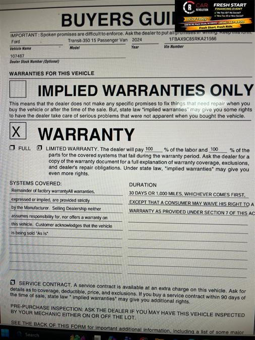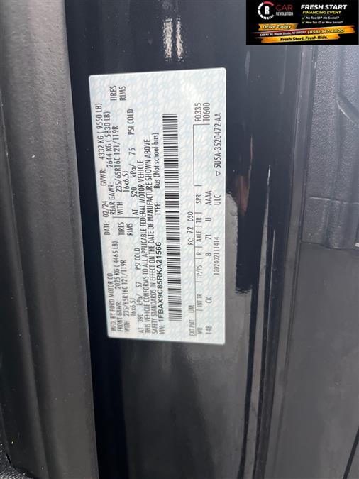 This outstanding example of a 2024 Ford Transit-350 15 Passenger Van XLT AWD is offered by Car Revolution. This Ford includes: Optional Equipment: Comfort Seating capacity - 15 Removable fifth-row seats Fifth-row split-bench seat Front facing fifth-row seat Height adjustable fifth-row head restraints Manual fifth-row head restraint control 3 fourth-row head restraint(s) 4 fifth-row head restraint(s) Exterior and Appearance Metallic paint Front license plate bracket Seating 15-PASSENGER SEATS Seating capacity - 15 Height adjustable fourth-row head restraints Manual fourth-row head restraint control Removable fifth-row seats Fifth-row split-bench seat Front facing fifth-row seat Height adjustable fifth-row head restraints Manual fifth-row head restraint control 3 fourth-row head restraint(s) 4 fifth-row head restraint(s) Powertrain and Mechanical Dual lead acid batteries Exterior FRONT LICENSE PLATE BRACKET Front license plate bracket Additional Options Order Code 302A Interior DARK PALAZZO GRAY CLOTH Engine DUAL BATTERIES (70 AMP-HR) Dual lead acid batteries Paint AGATE BLACK METALLIC Metallic paint Suspension 3.73 LIMITED SLIP AXLE Mechanical limited slip differential *Note - For third party subscriptions or services, please contact the dealer for more information.* Quality and prestige abound with this Ford Transit-350 15 Passenger Van XLT AWD. No matter the varying terrain or weather conditions, this all-wheel drive vehicle will help you reach your destination safely and securely in a well-appointed cabin with many features found on cars twice the price. You can finally stop searching... You've found the one you've been looking for. Car Revolution has been in business since 1998 with 2 locations and over 300 cars. A family owned business, focused and determined to extend hospitality to all our clients. We make every effort to present information that is accurate. However, it is based on data provided by the vehicle manufacturer and other sources. Therefore exact Configuration, Color, Certification and Accessories should be used as a guide only and are not guaranteed under any circumstances, for any inaccuracies, claims of losses of any nature. All advertised prices includes all cost to be paid by the consumer, except: Title, Taxes, Registration, License Fees, Insurance, Dealer Prep, Additional Options and include all applicable rebates. Subject to Credit Approval. Every effort is made in order to display accurate and current vehicle information, including Pricing. All vehicles are subjected to prior sale, removal and transport elsewhere, awaiting Title and Ownership Confirmation. Inventory is updated daily and subject to change. Not responsible for typographical errors or omissions. To better insure the specific vehicle's availability, call us right away at 856-316-3444 and feel free to ask any questions. EMG-WB This outstanding example of a 2024 Ford Transit Passenger Wagon XL is offered by Car Revolution. Sophistication & understated luxury comes standard on this Ford Transit Passenger Wagon XL. Well-known by many, the Transit Passenger Wagon has become a household name in the realm of quality and prestige. Enjoy safety and stability with this all-wheel drive vehicle and drive with confidence in any condition. Just what you've been looking for. With quality in mind, this vehicle is the perfect addition to take home. There is no reason why you shouldn't buy this Ford Transit Passenger Wagon XL. It is incomparable for the price and quality. Car Revolution has been in business since 1998 with 2 locations and over 300 cars. A family owned business, focused and determined to extend hospitality to all our clients. We make every effort to present information that is accurate. However, it is based on data provided by the vehicle manufacturer and other sources. Therefore exact Configuration, Color, Certification and Accessories should be used as a guide only and are not guaranteed under any circumstances, for any inaccuracies, claims of losses of any nature. All advertised prices includes all cost to be paid by the consumer, except: Title, Taxes, Registration, License Fees, Insurance, Dealer Prep, Additional Options and include all applicable rebates. Subject to Credit Approval. Every effort is made in order to display accurate and current vehicle information, including Pricing. All vehicles are subjected to prior sale, removal and transport elsewhere, awaiting Title and Ownership Confirmation. Inventory is updated daily and subject to change. Not responsible for typographical errors or omissions. To better insure the specific vehicle's availability, call us right away at 856-316-3444 and feel free to ask any questions. EMG-WB