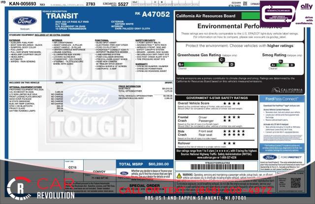 This 2024 Ford Transit Passenger Wagon XL is proudly offered by CAR REVOLUTION Excellence, luxury and stature are just a few of the pillars this car is built upon. This is the one. Just what you've been looking for. Just what you've been looking for. With quality in mind, this vehicle is the perfect addition to take home. The Ford Transit Passenger Wagon XL will provide you with everything you have always wanted in a car -- Quality, Reliability, and Character. Car Revolution has been in business since 1998 with 2 locations and over 300 cars. A family owned business, focused and determined to extend hospitality to all our clients. We make every effort to present information that is accurate. However, it is based on data provided by the vehicle manufacturer and other sources. Therefore exact Configuration, Color, Certification and Accessories should be used as a guide only and are not guaranteed under any circumstances, for any inaccuracies, claims of losses of any nature. All advertised prices includes all cost to be paid by the consumer, except: Title, Taxes, Registration, License Fees, Insurance, Dealer Prep, Additional Options and include all applicable rebates. Subject to Credit Approval. Every effort is made in order to display accurate and current vehicle information, including Pricing. All vehicles are subjected to prior sale, removal and transport elsewhere, awaiting Title and Ownership Confirmation. Inventory is updated daily and subject to change. Not responsible for typographical errors or omissions. To better insure the specific vehicle's availability, call us right away at 732-527-0477 and feel free to ask any questions. EMG-WB