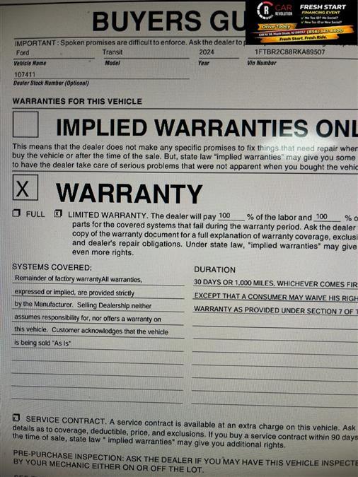 Car Revolution is honored to present a wonderful example of pure vehicle design... this 2024 Ford Transit T250 MED ROOF 148 AWD only has 47,922mi on it and could potentially be the vehicle of your dreams! This Ford includes: Optional Equipment: Convenience Cargo area tie downs Exterior and Appearance Non-metallic paint Exterior FRONT LICENSE PLATE BRACKET Front license plate bracket Additional Options Order Code 101A Interior TIE DOWN CARGO HOOKS Cargo area tie downs DARK PALAZZO GRAY VINYL Entertainment RADIO - SYNC3, 4 SCN 4 inch primary display 911 Assist emergency SOS system via mobile device Smart device app link 2 USB ports AM/FM Paint OXFORD WHITE Non-metallic paint Technology and Telematics 911 Assist emergency SOS system via mobile device Smart device app link *Note - For third party subscriptions or services, please contact the dealer for more information.* You deserve a vehicle designed for higher expectations. This Ford Transit T250 MED ROOF 148 AWD delivers with a luxurious, well-appointed interior and world-class engineering. Once you see this Ford, you'll quickly see that this is the perfect vehicle for the outdoor junky! You'll even feel relaxed knowing that this All-Wheel drive vehicle will get you to where you are going no matter what may come your way. Also, with this Ford Transit's dependable control you'll be able to drive into the sunset without a care in the world! The Ford Transit T250 MED ROOF 148 AWD will provide you with everything you have always wanted in a car -- Quality, Reliability, and Character. Car Revolution has been in business since 1998 with 2 locations and over 300 cars. A family owned business, focused and determined to extend hospitality to all our clients. We make every effort to present information that is accurate. However, it is based on data provided by the vehicle manufacturer and other sources. Therefore exact Configuration, Color, Certification and Accessories should be used as a guide only and are not guaranteed under any circumstances, for any inaccuracies, claims of losses of any nature. All advertised prices includes all cost to be paid by the consumer, except: Title, Taxes, Registration, License Fees, Insurance, Dealer Prep, Additional Options and include all applicable rebates. Subject to Credit Approval. Every effort is made in order to display accurate and current vehicle information, including Pricing. All vehicles are subjected to prior sale, removal and transport elsewhere, awaiting Title and Ownership Confirmation. Inventory is updated daily and subject to change. Not responsible for typographical errors or omissions. To better insure the specific vehicle's availability, call us right away at 856-316-3444 and feel free to ask any questions. EMG-WB Thank you for visiting another one of Car Revolution's online listings! Please continue for more information on this 2024 Ford Transit Cargo Van with 47,922mi. The Ford Transit Cargo Van 's pristine good looks were combined with the Ford high standard of excellence in order to make this a unique find. Simply put, this all wheel drive vehicle is engineered with higher standards. Enjoy improved steering, superior acceleration, and increased stability and safety while driving this AWD FordTransit Cargo Van . Driven by many, but adored by more, the Ford Transit Cargo Van is a perfect addition to any home. This vehicle won't last long, take it home today. Car Revolution has been in business since 1998 with 2 locations and over 300 cars. A family owned business, focused and determined to extend hospitality to all our clients. We make every effort to present information that is accurate. However, it is based on data provided by the vehicle manufacturer and other sources. Therefore exact Configuration, Color, Certification and Accessories should be used as a guide only and are not guaranteed under any circumstances, for any inaccuracies, claims of losses of any nature. All advertised prices includes all cost to be paid by the consumer, except: Title, Taxes, Registration, License Fees, Insurance, Dealer Prep, Additional Options and include all applicable rebates. Subject to Credit Approval. Every effort is made in order to display accurate and current vehicle information, including Pricing. All vehicles are subjected to prior sale, removal and transport elsewhere, awaiting Title and Ownership Confirmation. Inventory is updated daily and subject to change. Not responsible for typographical errors or omissions. To better insure the specific vehicle's availability, call us right away at 856-316-3444 and feel free to ask any questions. EMG-WB