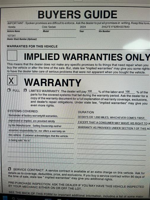 Pictures of used 2024 Honda Civic Sedan Touring in Maple Shade, NJ