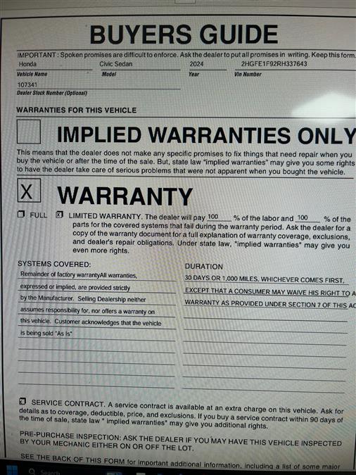 Pictures of used 2024 Honda Civic Sedan Touring in Maple Shade, NJ
