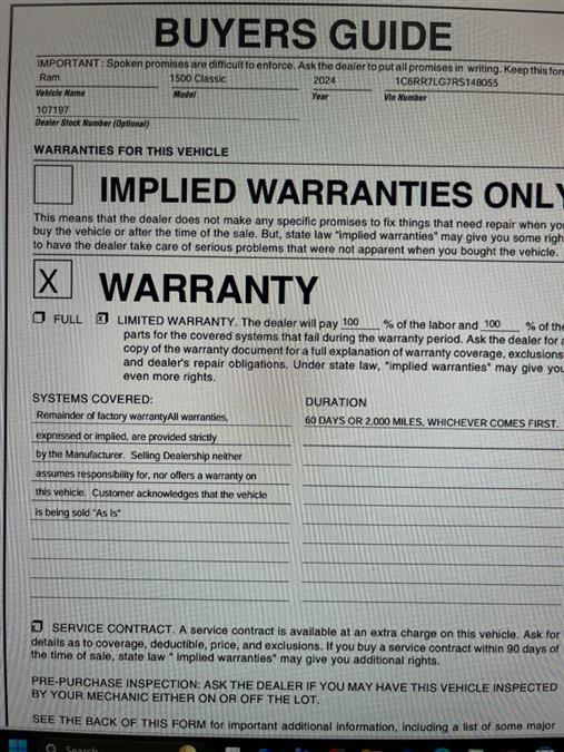 Pictures of used 2024 Ram 1500 Classic Warlock 4X4 CAB 5.7 BOX in Maple Shade, NJ