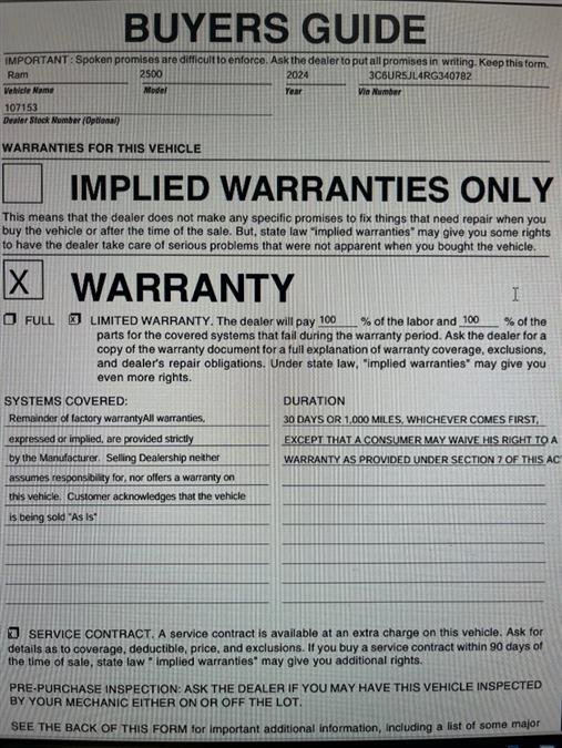 Pictures of used 2024 Ram 2500 Big Horn 4X4 CREW CAB 8 CUMMING in Maple Shade, NJ