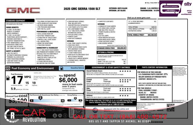 You can find this 2025 GMC Sierra 1500 SLT and many others like it at CAR REVOLUTION. Pull up in the vehicle and the valet will want to parked on the front row. This GMC Sierra 1500 SLT is the vehicle others dream to own. Don't miss your chance to make it your new ride. Simply put, this Four Wheel Drive is engineered with higher standards. Enjoy improved traction and safety while driving this 4WD GMC Sierra 1500 SLT. This is the one. Just what you've been looking for. This is about the time when you're saying it is too good to be true, and let us be the one's to tell you, it is absolutely true. Car Revolution has been in business since 1998 with 2 locations and over 300 cars. A family owned business, focused and determined to extend hospitality to all our clients. We make every effort to present information that is accurate. However, it is based on data provided by the vehicle manufacturer and other sources. Therefore exact Configuration, Color, Certification and Accessories should be used as a guide only and are not guaranteed under any circumstances, for any inaccuracies, claims of losses of any nature. All advertised prices includes all cost to be paid by the consumer, except: Title, Taxes, Registration, License Fees, Insurance, Dealer Prep, Additional Options and include all applicable rebates. Subject to Credit Approval. Every effort is made in order to display accurate and current vehicle information, including Pricing. All vehicles are subjected to prior sale, removal and transport elsewhere, awaiting Title and Ownership Confirmation. Inventory is updated daily and subject to change. Not responsible for typographical errors or omissions. To better insure the specific vehicle's availability, call us right away at 732-527-0477 and feel free to ask any questions. EMG-WB